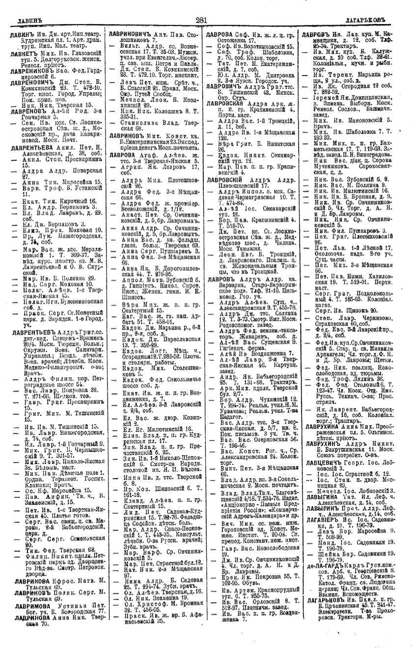 Алфавитный указатель адресовъ жителей г. Москвы и ея пригородовъ - page 279