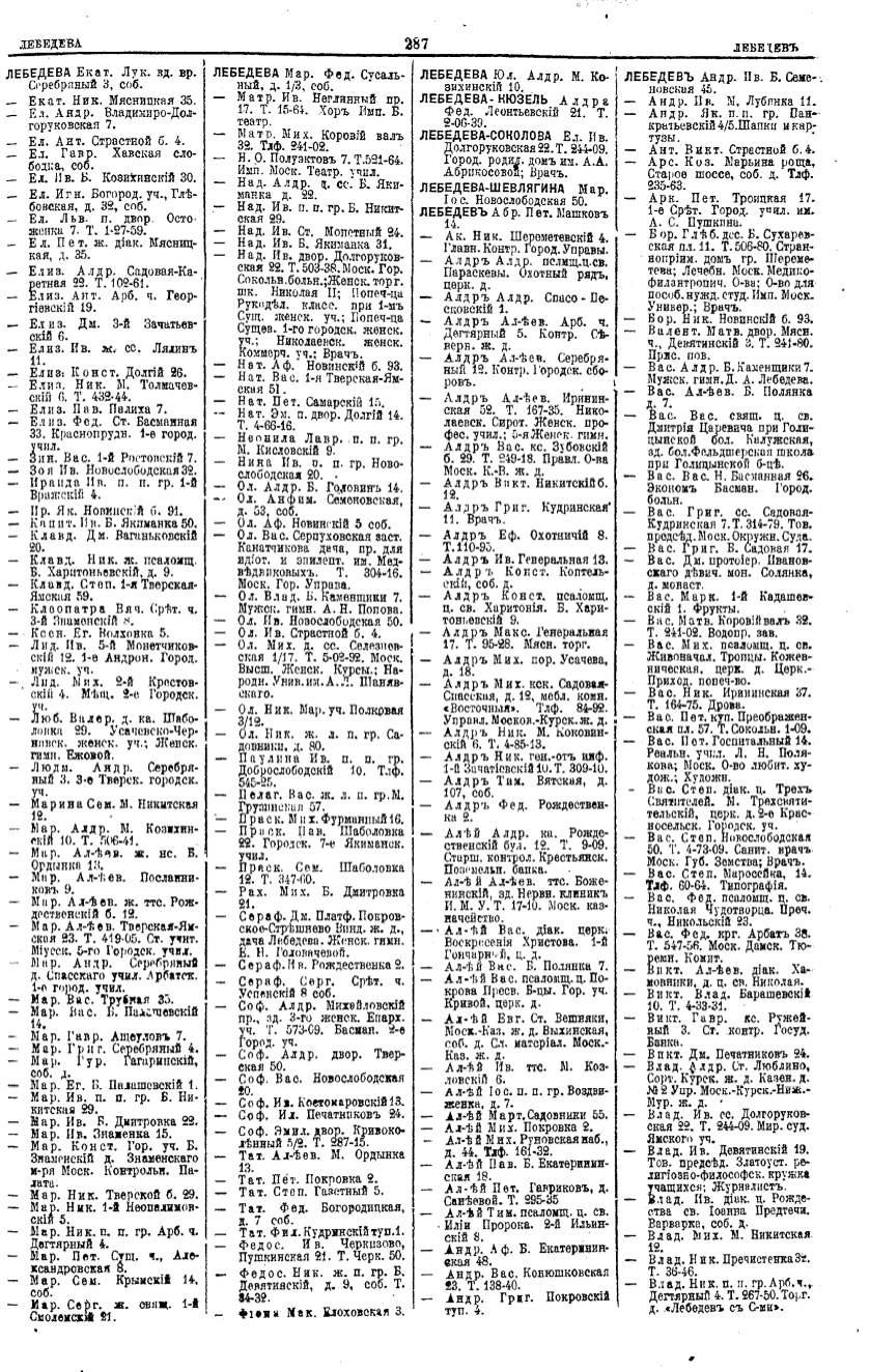Алфавитный указатель адресовъ жителей г. Москвы и ея пригородовъ - page 285