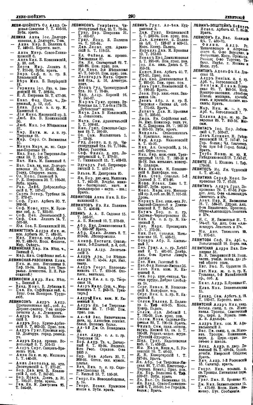 Алфавитный указатель адресовъ жителей г. Москвы и ея пригородовъ - page 288