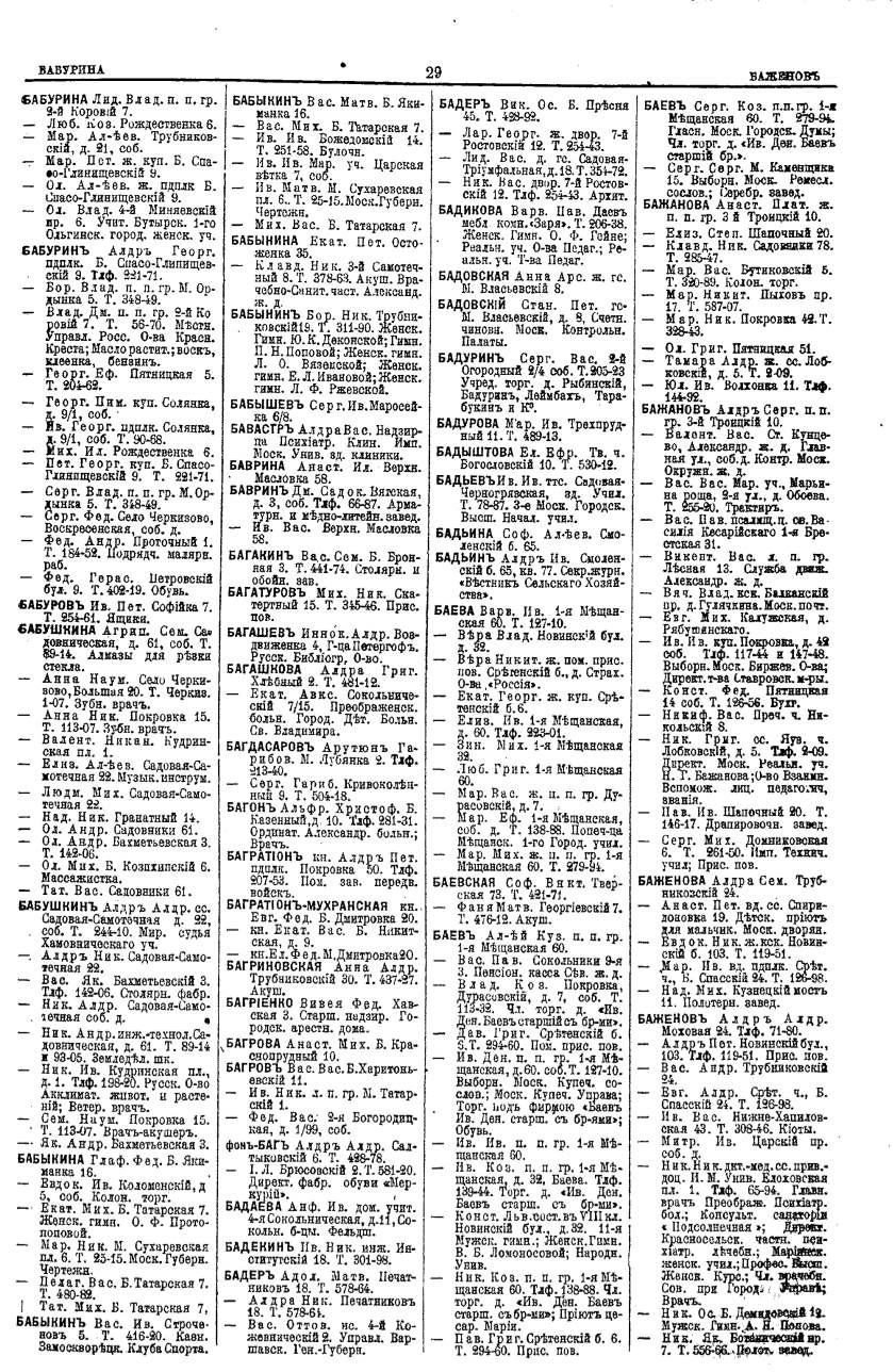 Алфавитный указатель адресовъ жителей г. Москвы и ея пригородовъ - page 29