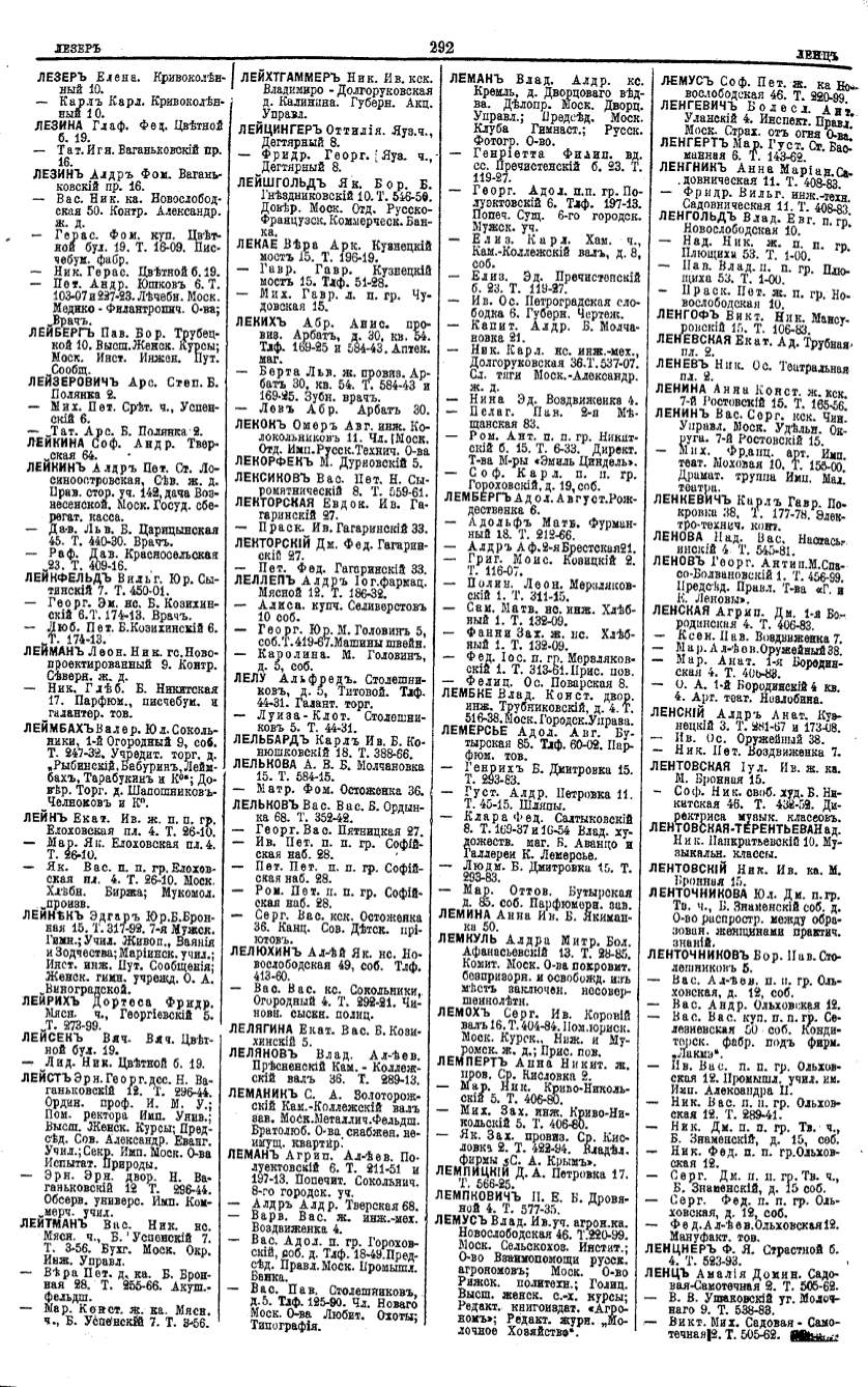 Алфавитный указатель адресовъ жителей г. Москвы и ея пригородовъ - page 290