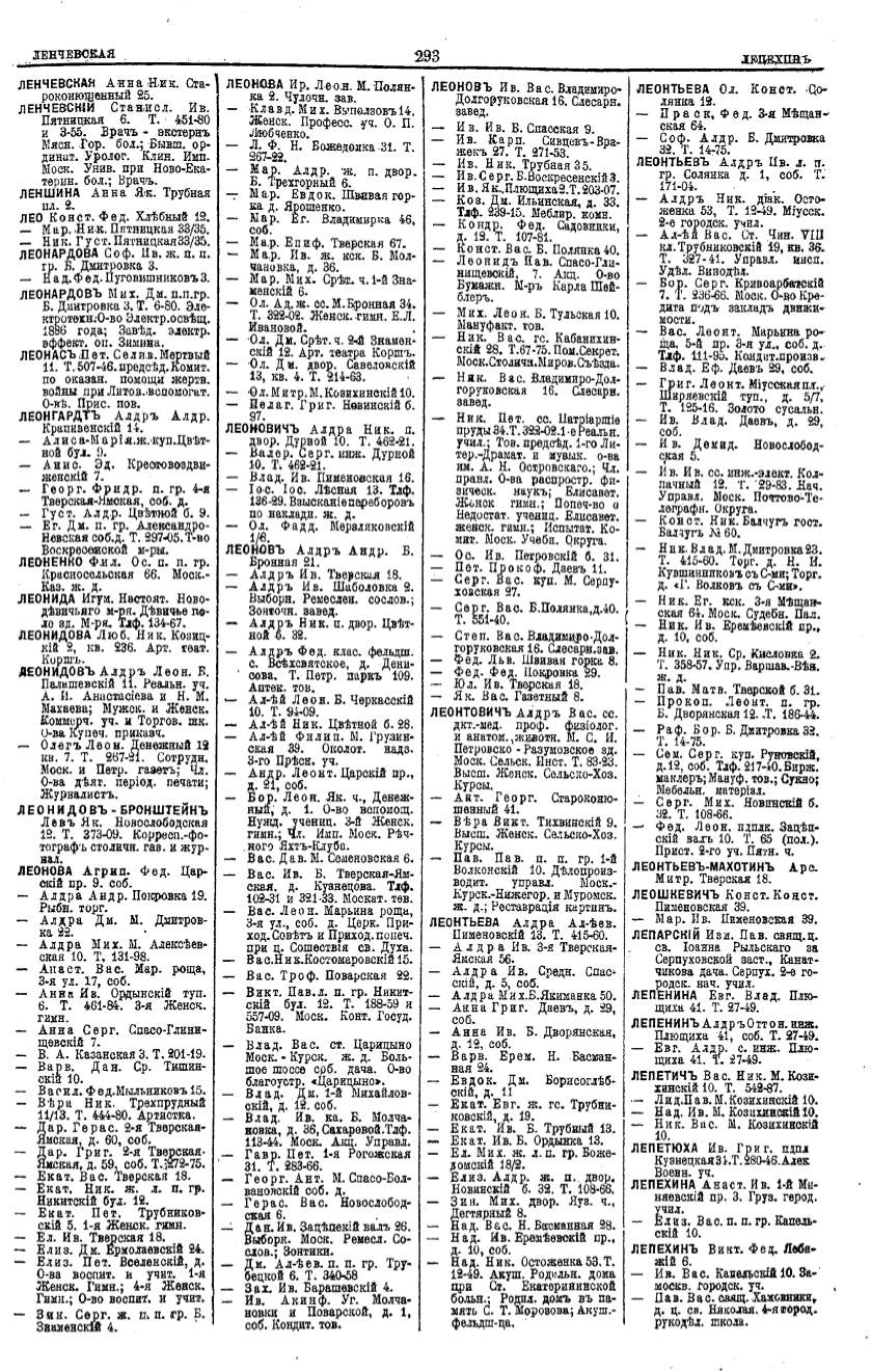 Алфавитный указатель адресовъ жителей г. Москвы и ея пригородовъ - page 291