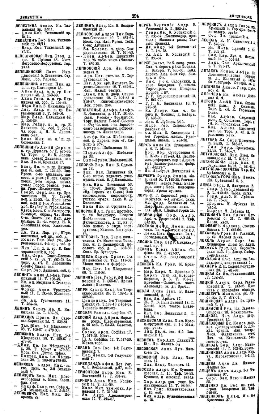Алфавитный указатель адресовъ жителей г. Москвы и ея пригородовъ - page 292