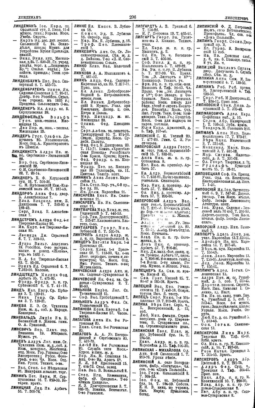 Алфавитный указатель адресовъ жителей г. Москвы и ея пригородовъ - page 294