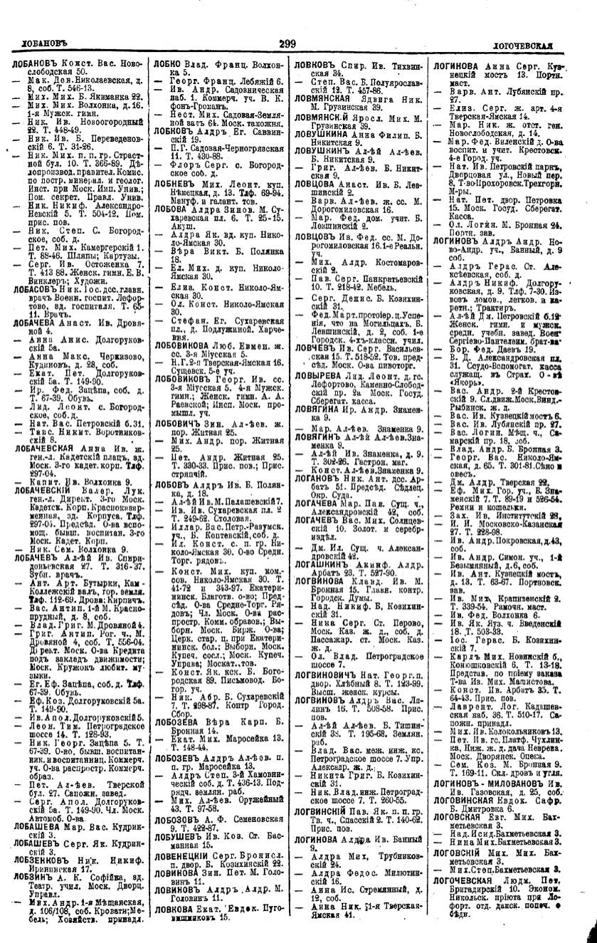 Алфавитный указатель адресовъ жителей г. Москвы и ея пригородовъ - page 297