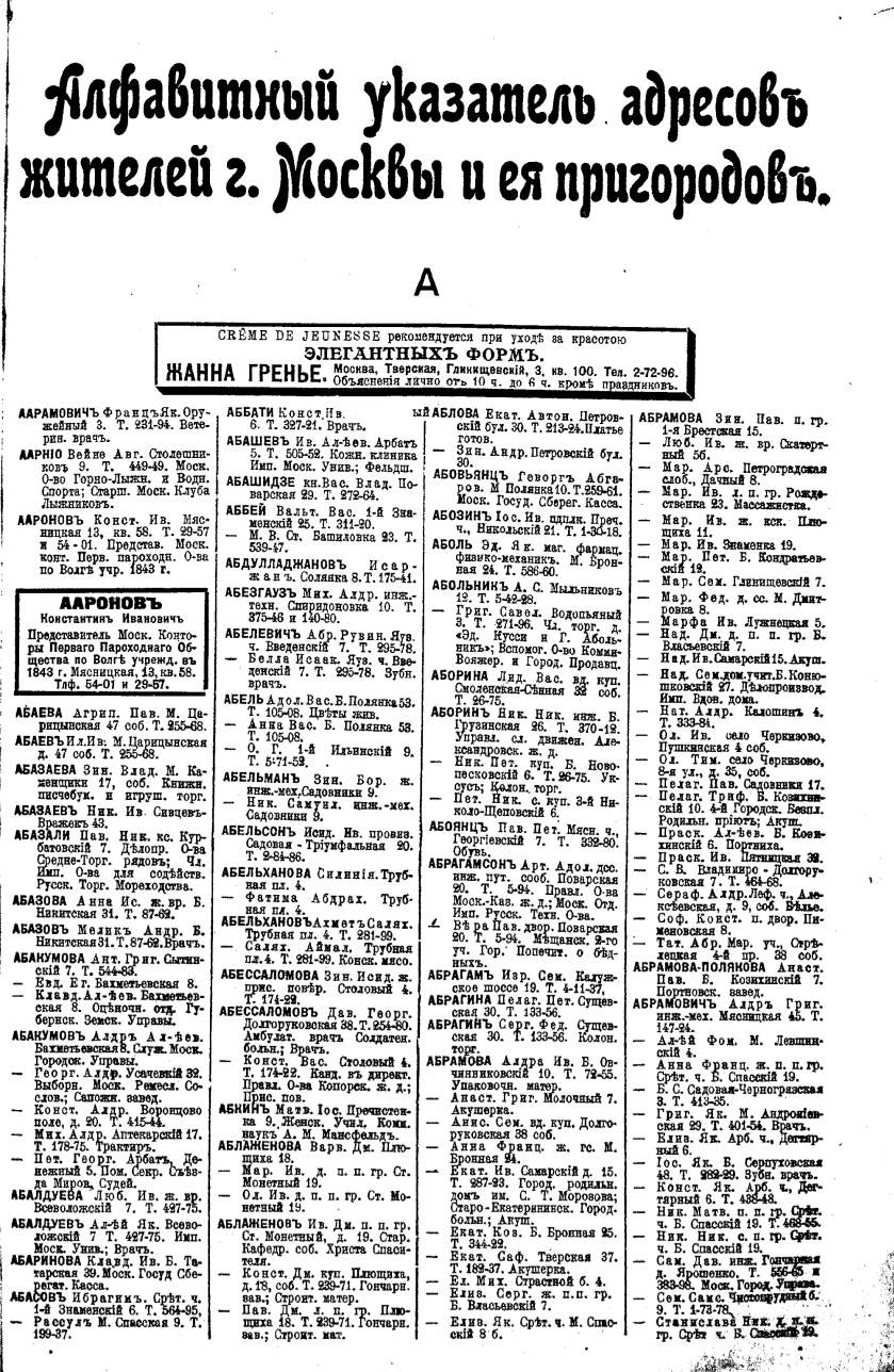 Алфавитный указатель адресовъ жителей г. Москвы и ея пригородовъ - page 3