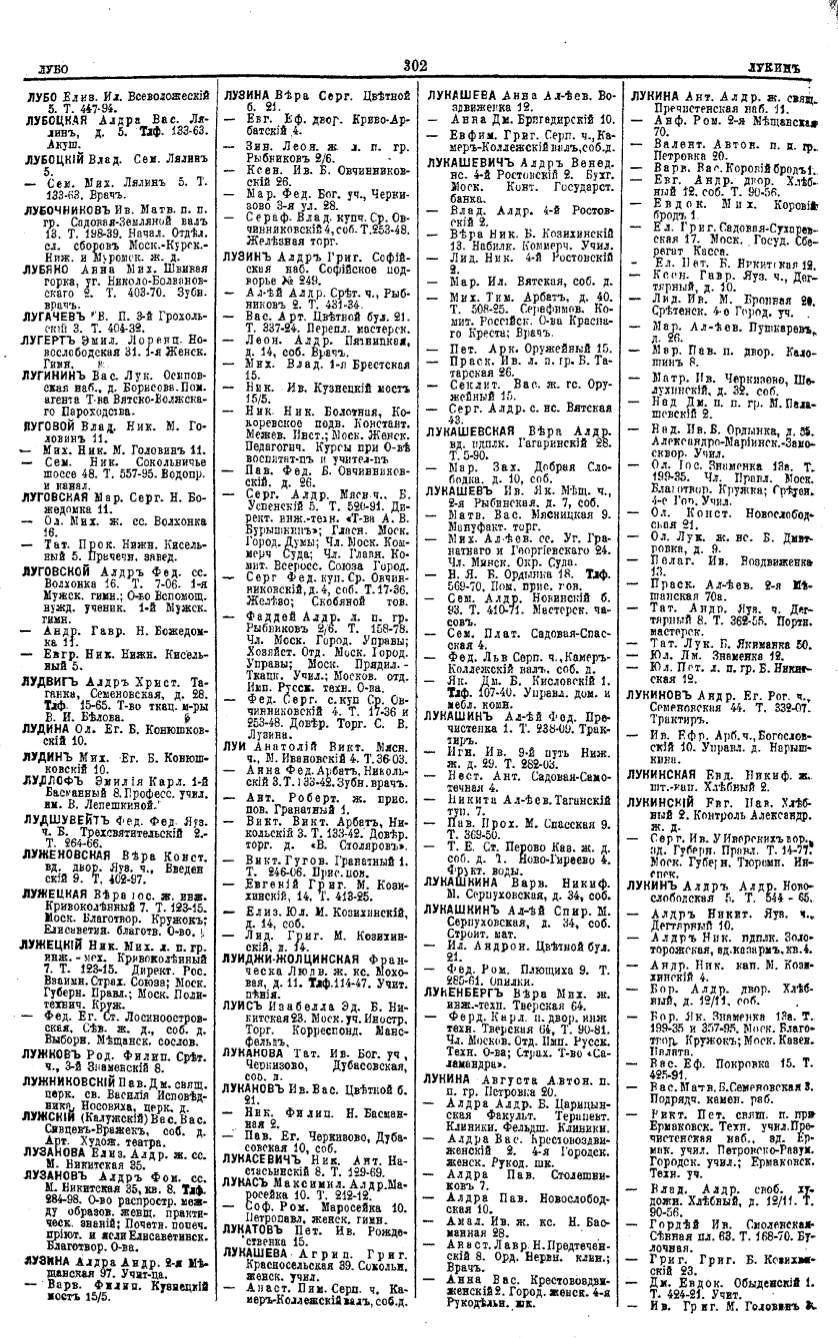 Алфавитный указатель адресовъ жителей г. Москвы и ея пригородовъ - page 300