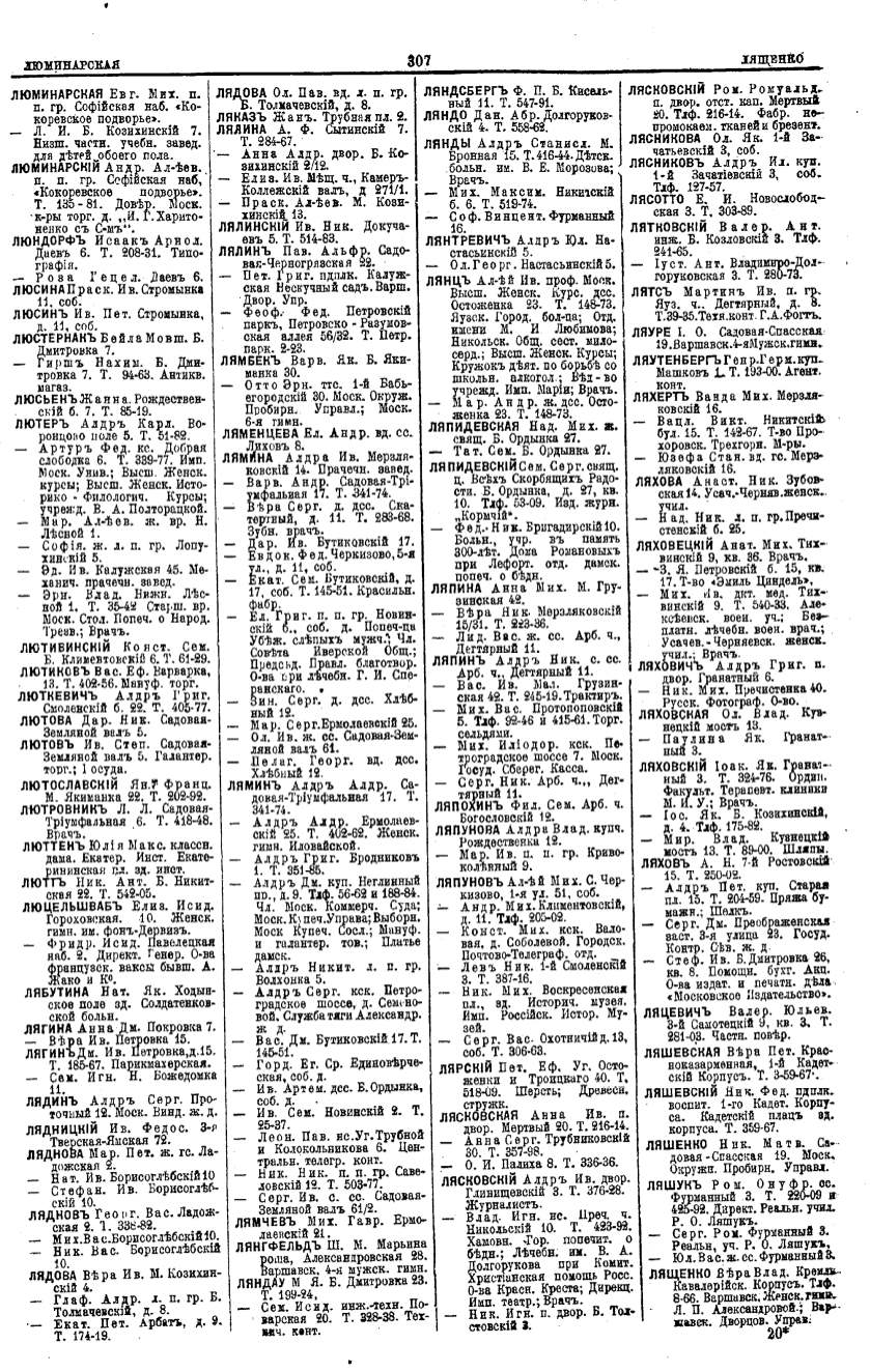 Алфавитный указатель адресовъ жителей г. Москвы и ея пригородовъ - page 305