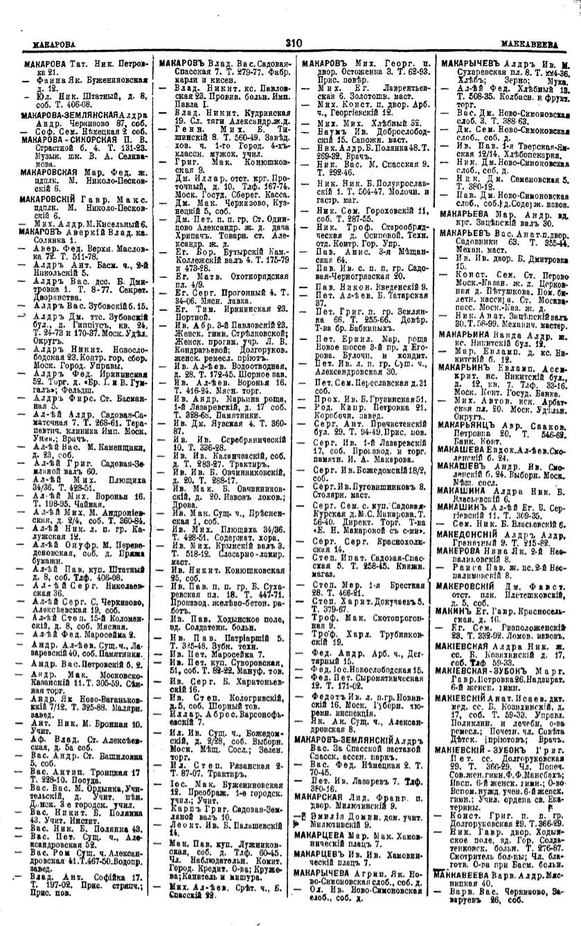Алфавитный указатель адресовъ жителей г. Москвы и ея пригородовъ - page 308