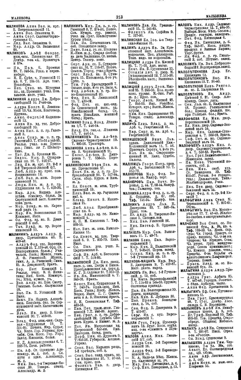 Алфавитный указатель адресовъ жителей г. Москвы и ея пригородовъ - page 311