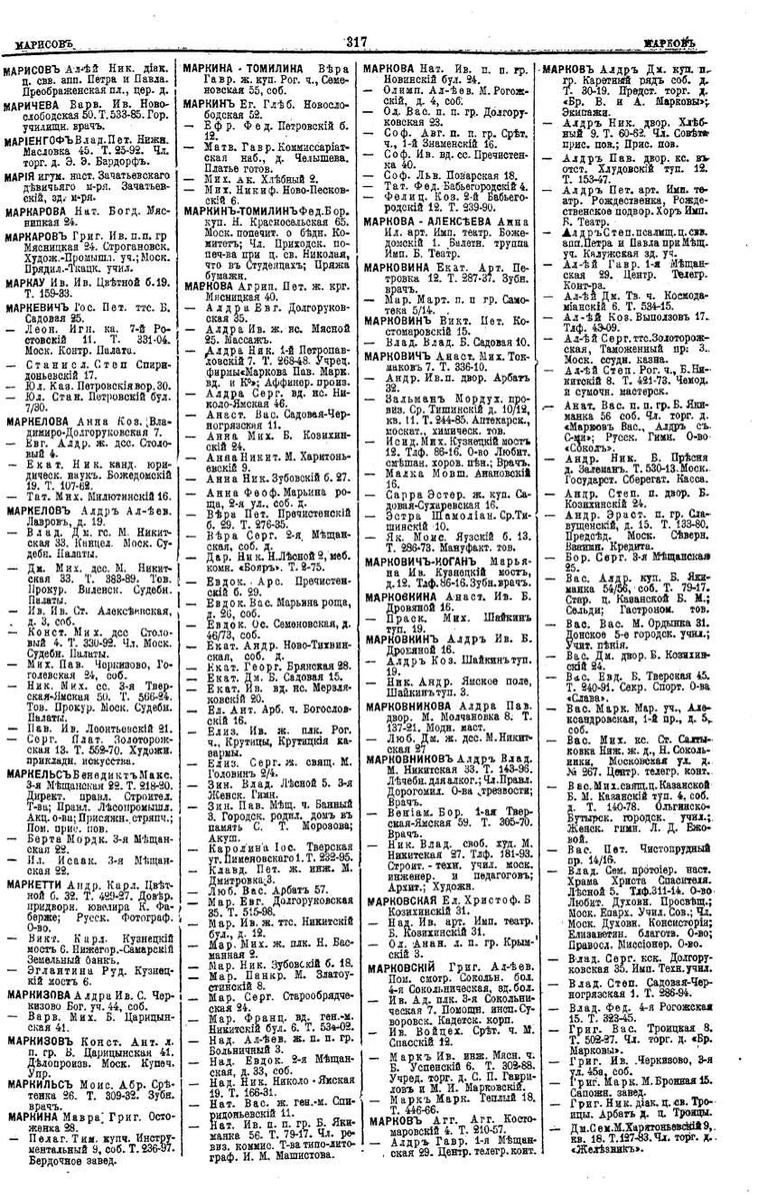 Алфавитный указатель адресовъ жителей г. Москвы и ея пригородовъ - page 315