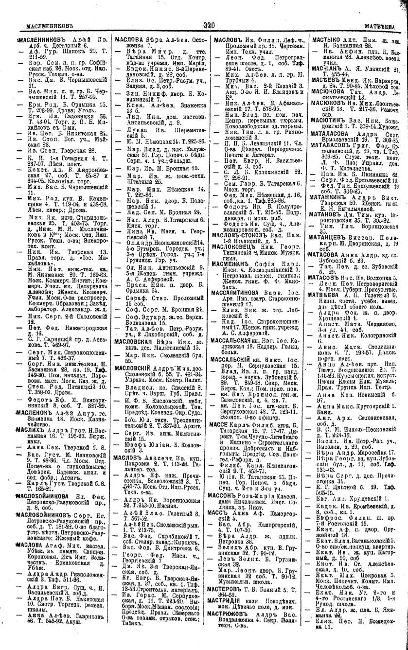 Алфавитный указатель адресовъ жителей г. Москвы и ея пригородовъ - page 318