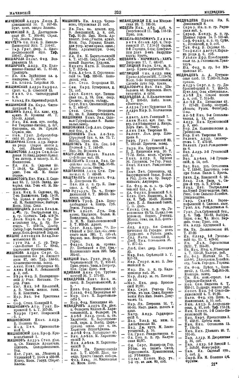 Алфавитный указатель адресовъ жителей г. Москвы и ея пригородовъ - page 321