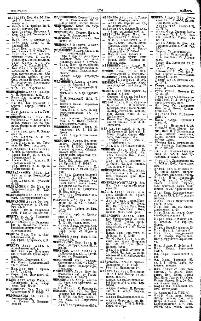Алфавитный указатель адресовъ жителей г. Москвы и ея пригородовъ - page 322