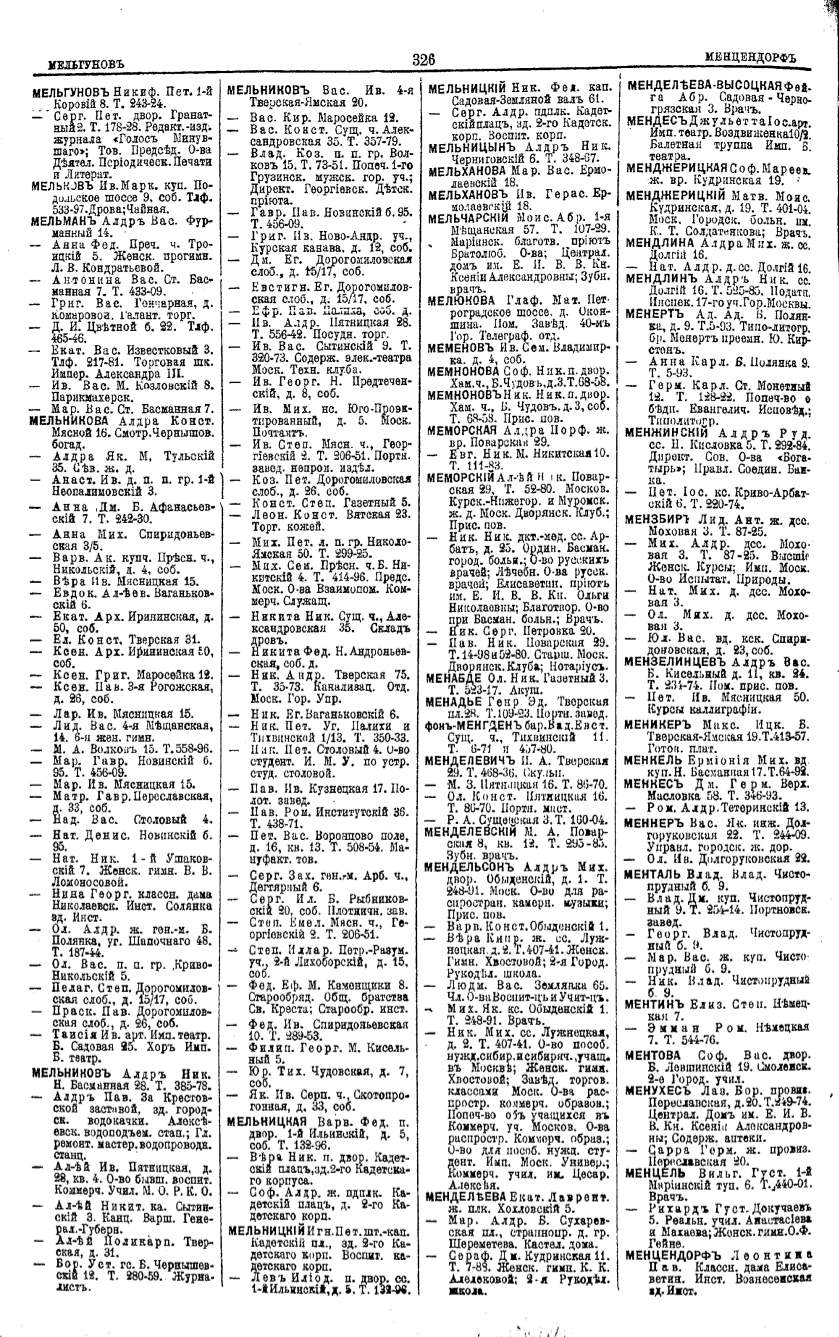 Алфавитный указатель адресовъ жителей г. Москвы и ея пригородовъ - page 324