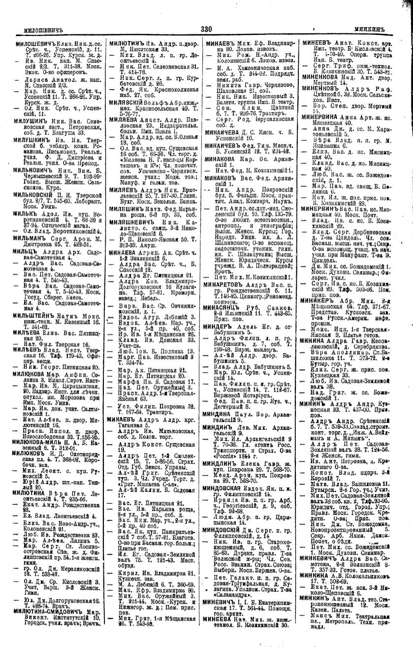 Алфавитный указатель адресовъ жителей г. Москвы и ея пригородовъ - page 328