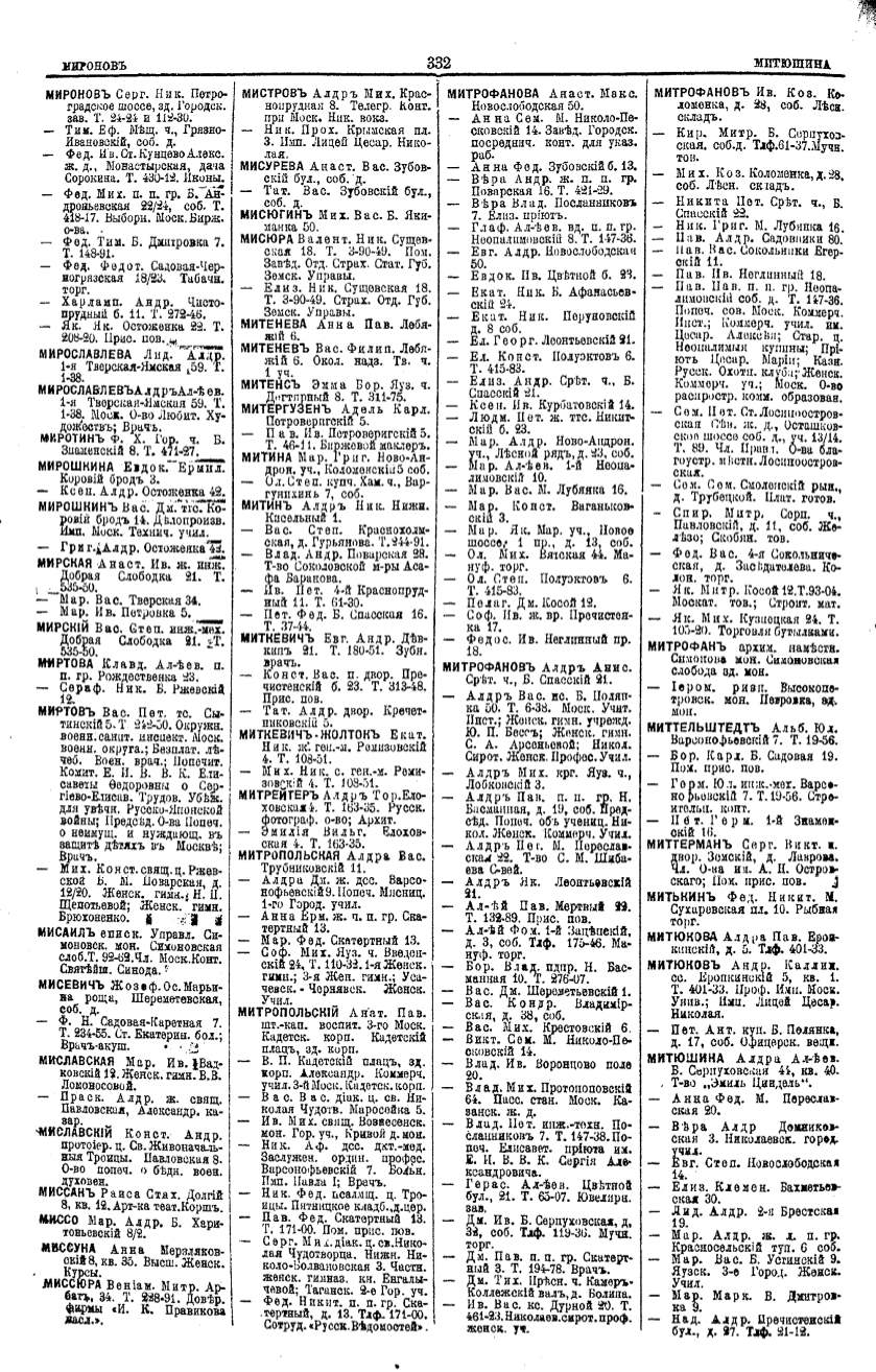 Алфавитный указатель адресовъ жителей г. Москвы и ея пригородовъ - page 330