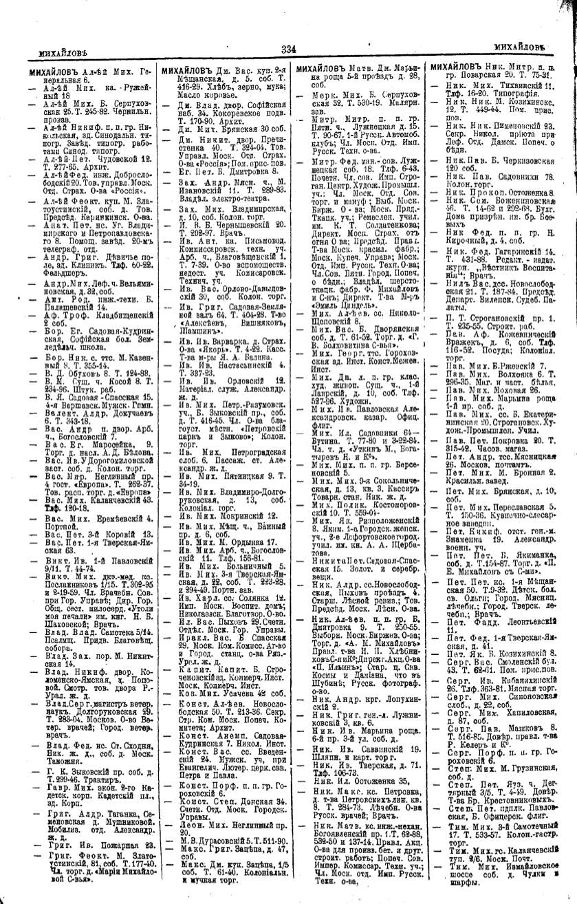 Алфавитный указатель адресовъ жителей г. Москвы и ея пригородовъ - page 332
