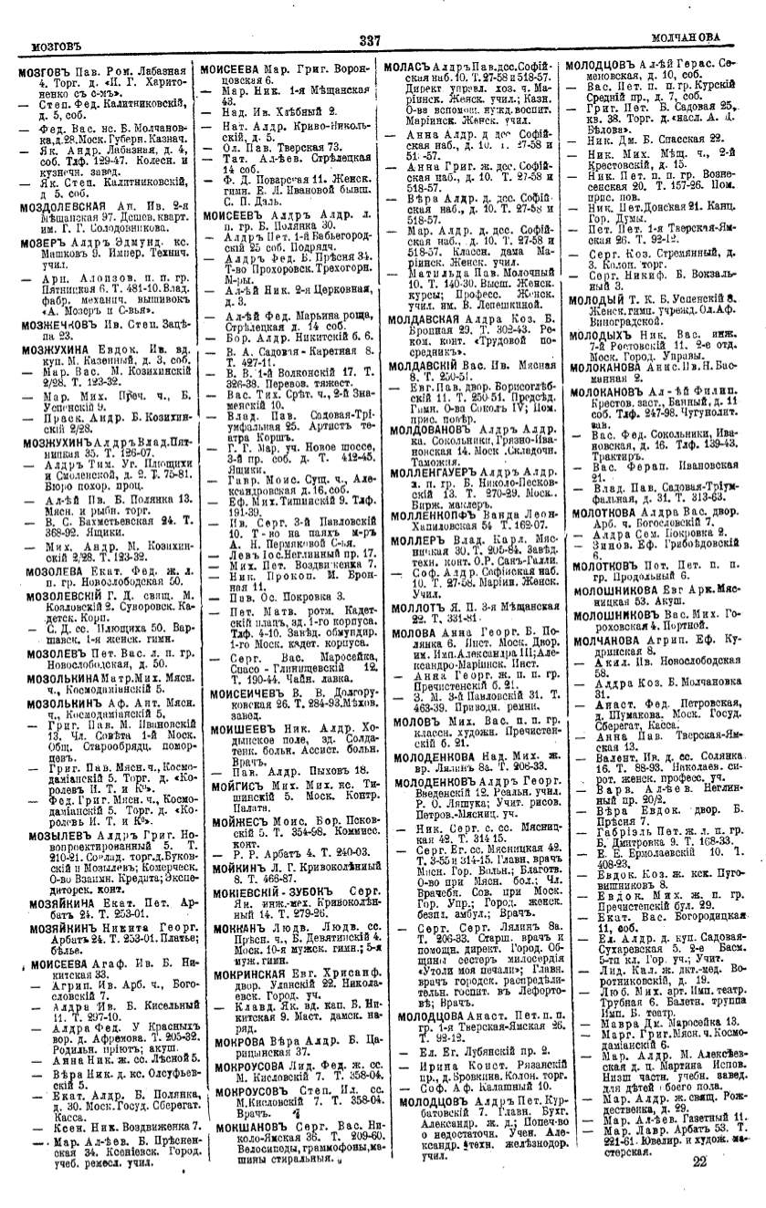 Алфавитный указатель адресовъ жителей г. Москвы и ея пригородовъ - page 335