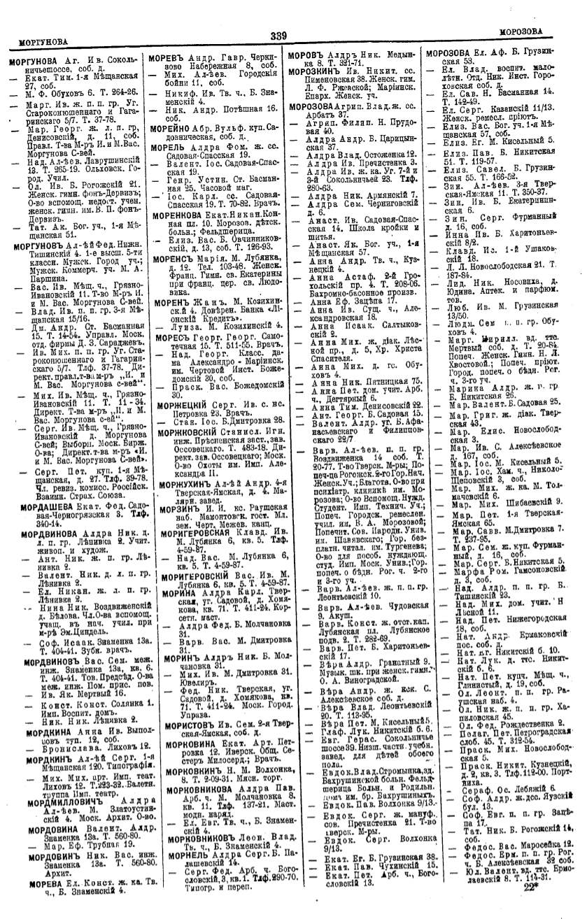 Алфавитный указатель адресовъ жителей г. Москвы и ея пригородовъ - page 337