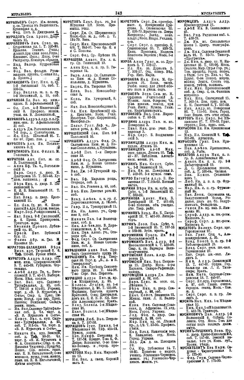 Алфавитный указатель адресовъ жителей г. Москвы и ея пригородовъ - page 341