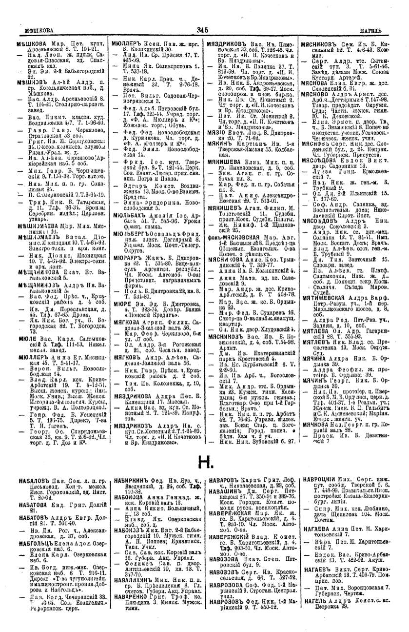 Алфавитный указатель адресовъ жителей г. Москвы и ея пригородовъ - page 343