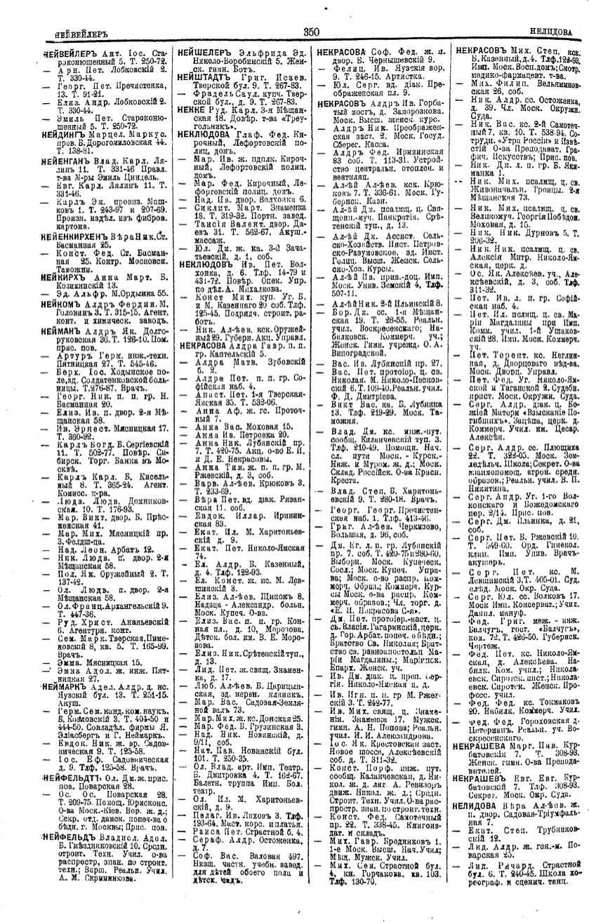 Алфавитный указатель адресовъ жителей г. Москвы и ея пригородовъ - page 348