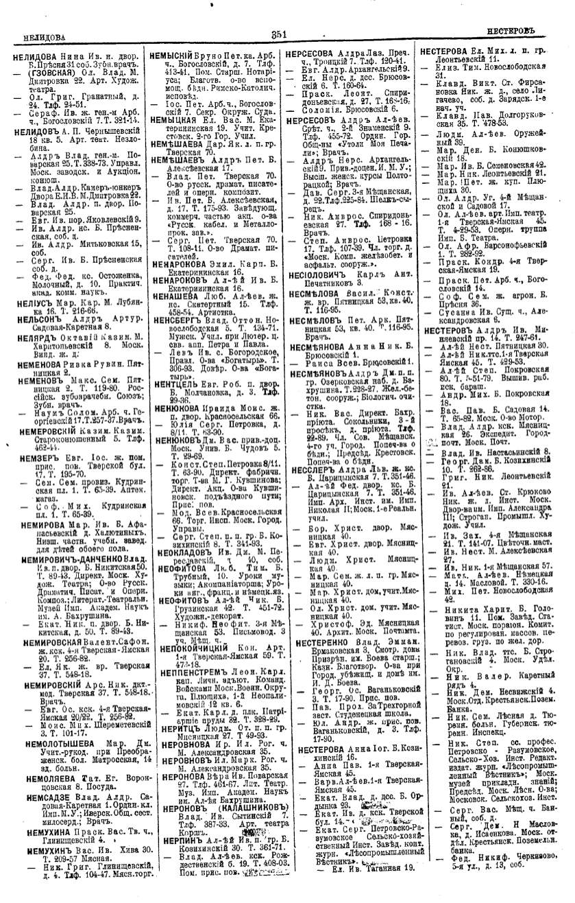 Алфавитный указатель адресовъ жителей г. Москвы и ея пригородовъ - page 349
