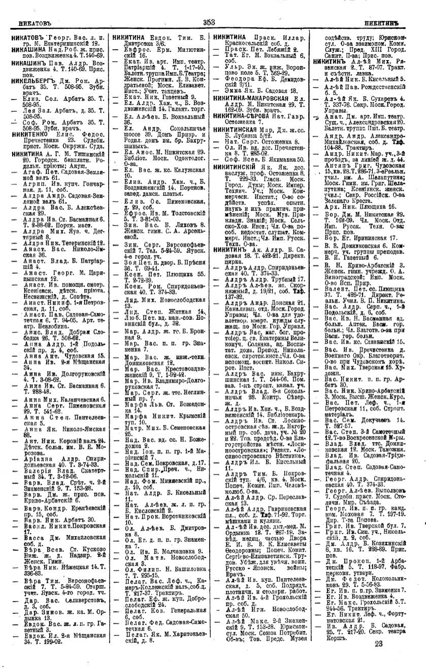 Алфавитный указатель адресовъ жителей г. Москвы и ея пригородовъ - page 351