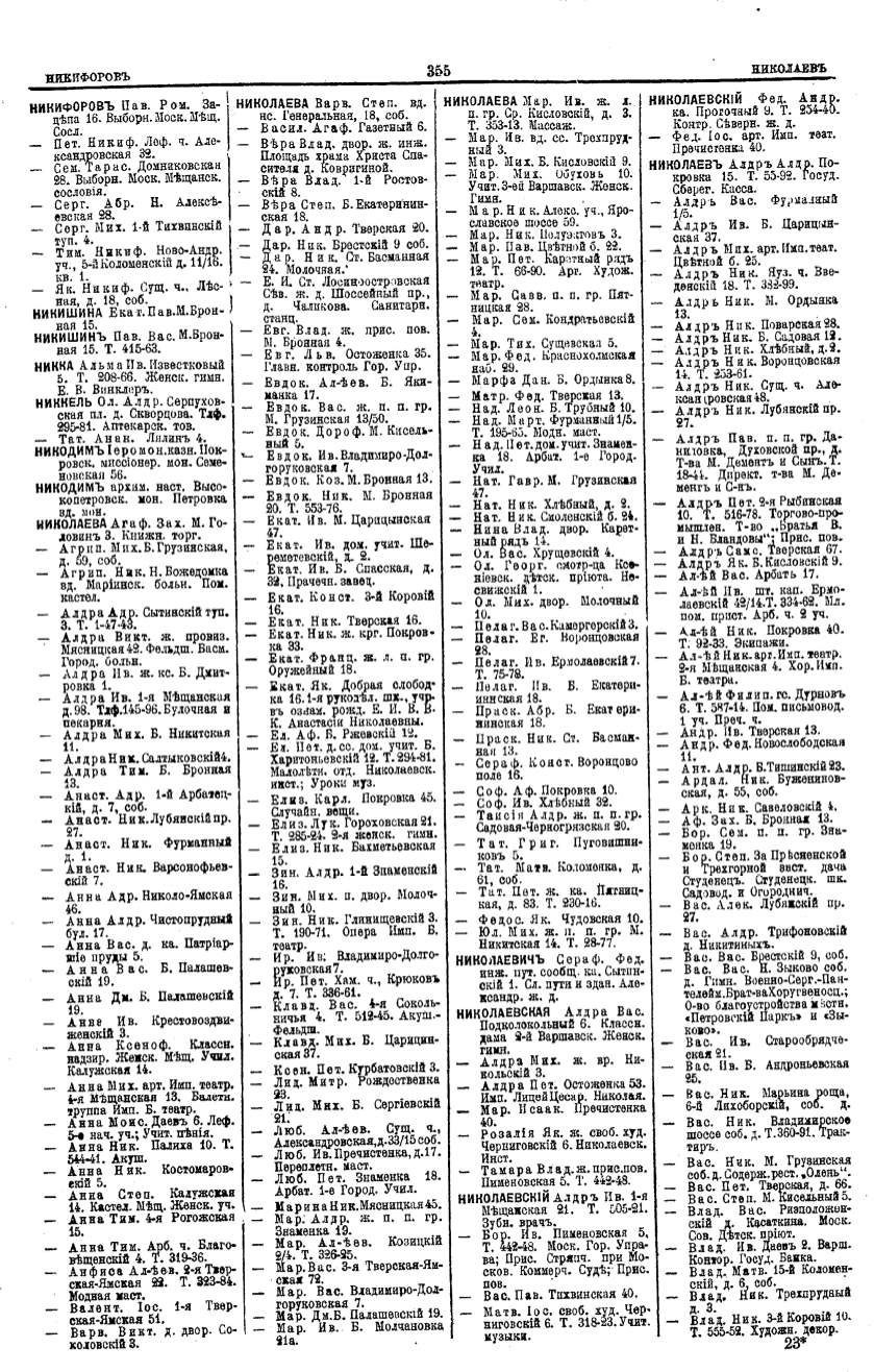 Алфавитный указатель адресовъ жителей г. Москвы и ея пригородовъ - page 353