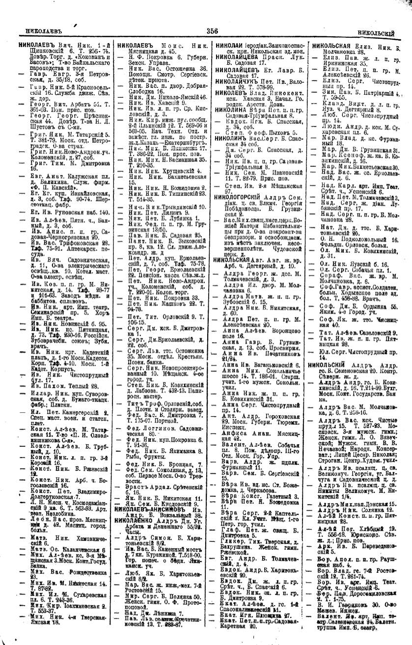 Алфавитный указатель адресовъ жителей г. Москвы и ея пригородовъ - page 354