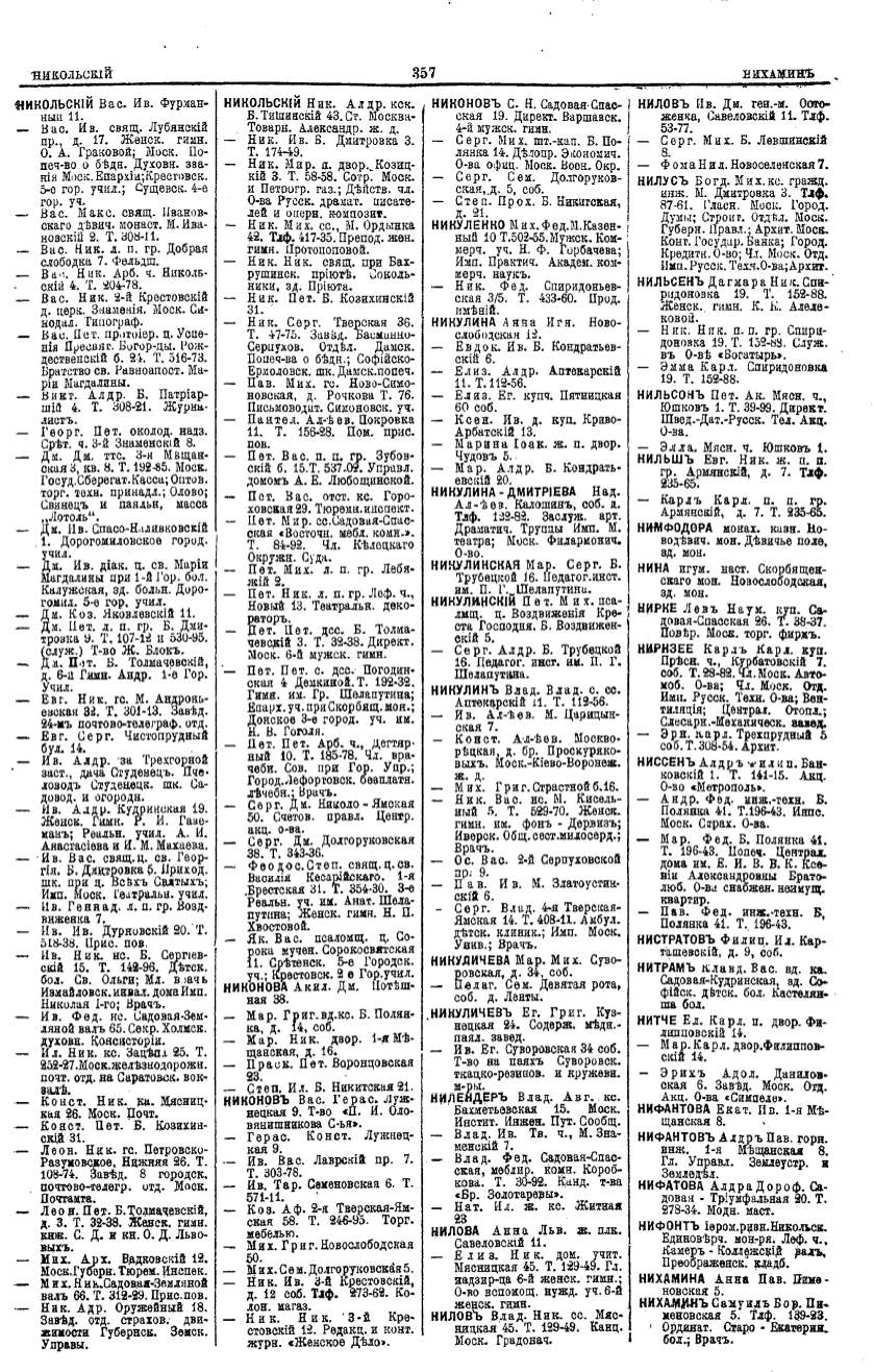 Алфавитный указатель адресовъ жителей г. Москвы и ея пригородовъ - page 355