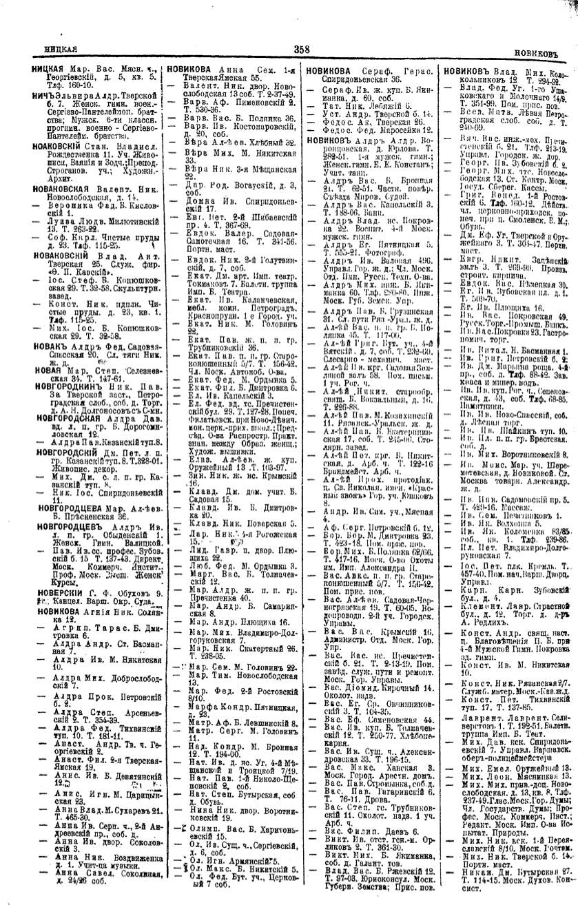 Алфавитный указатель адресовъ жителей г. Москвы и ея пригородовъ - page 356