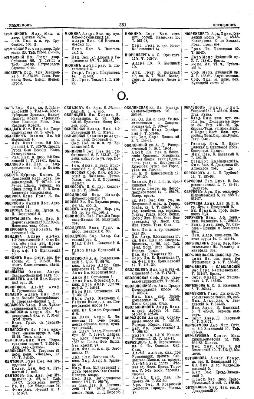 Алфавитный указатель адресовъ жителей г. Москвы и ея пригородовъ - page 359