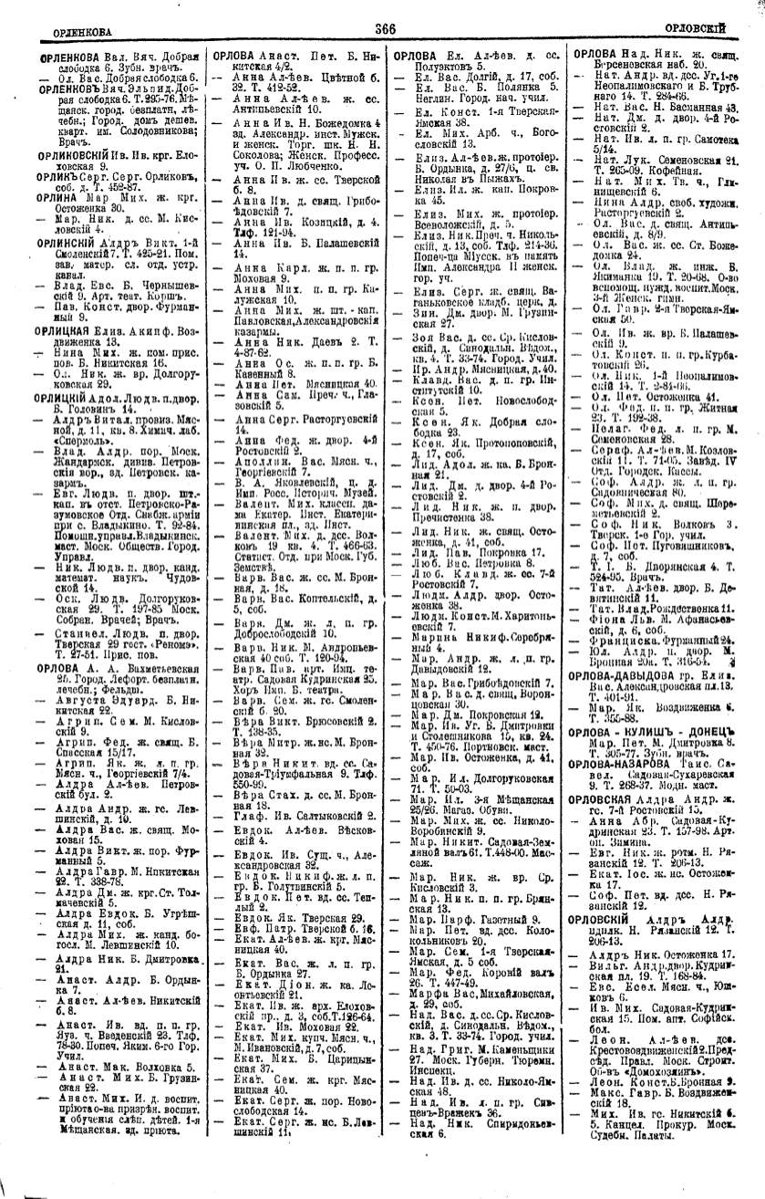 Алфавитный указатель адресовъ жителей г. Москвы и ея пригородовъ - page 364