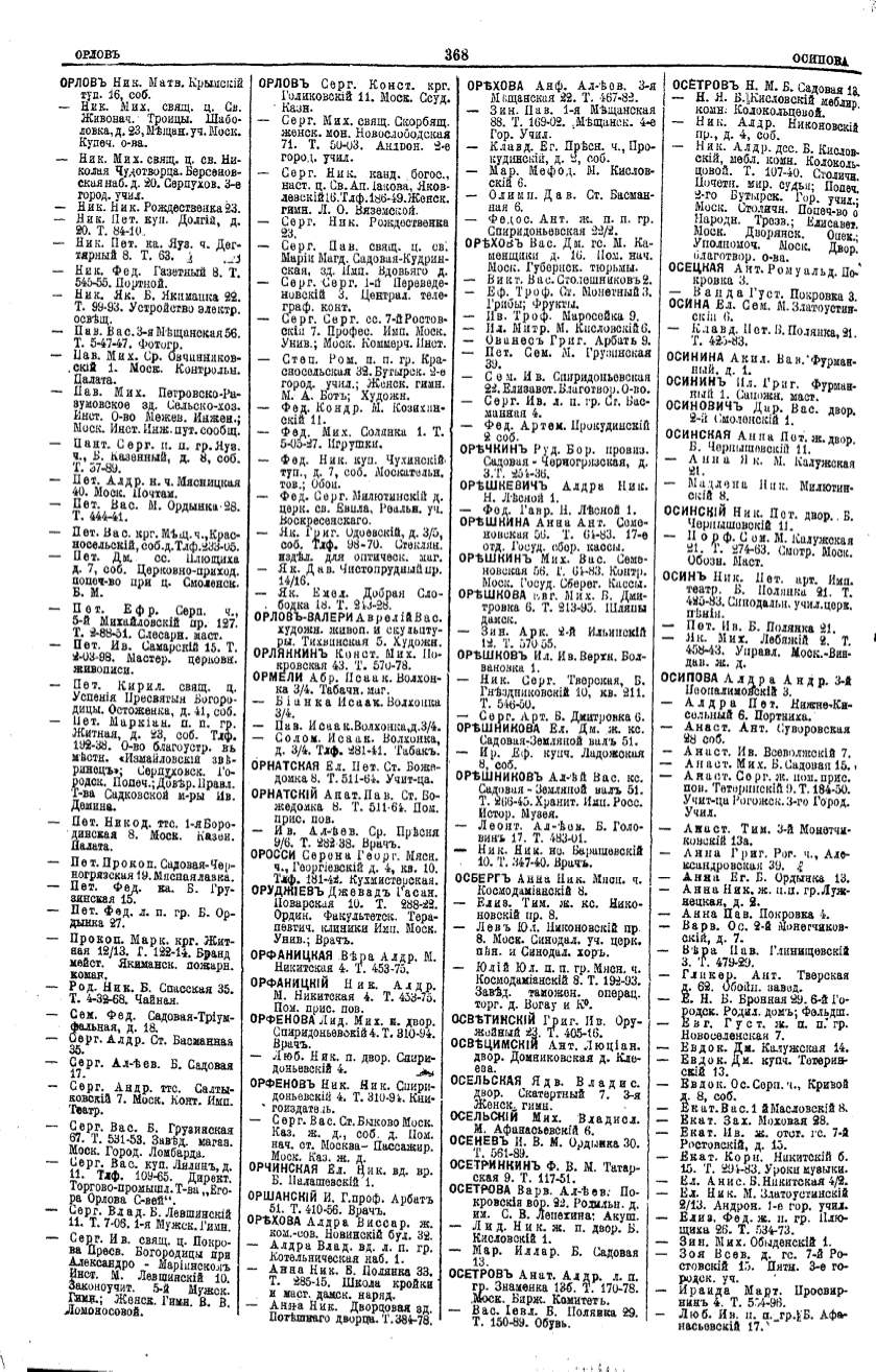 Алфавитный указатель адресовъ жителей г. Москвы и ея пригородовъ - page 366