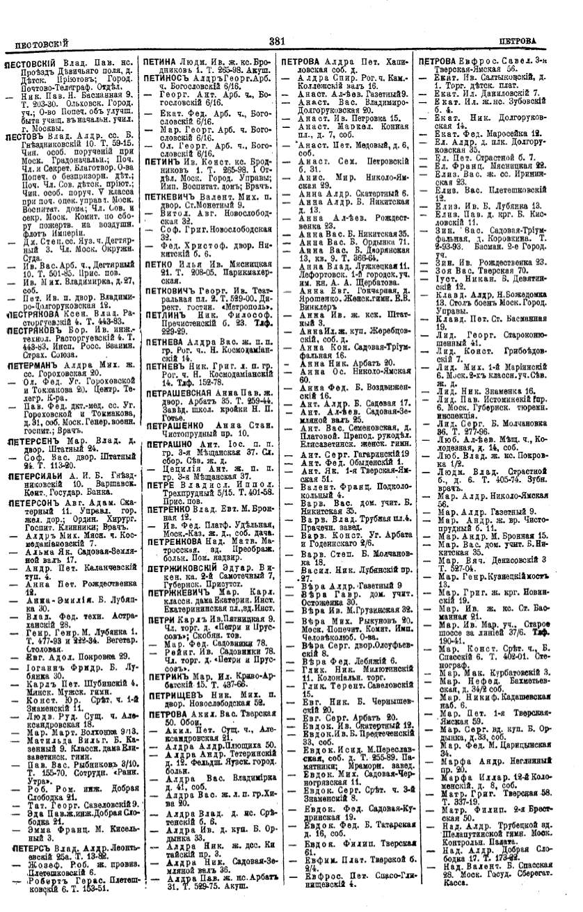 Алфавитный указатель адресовъ жителей г. Москвы и ея пригородовъ - page 379