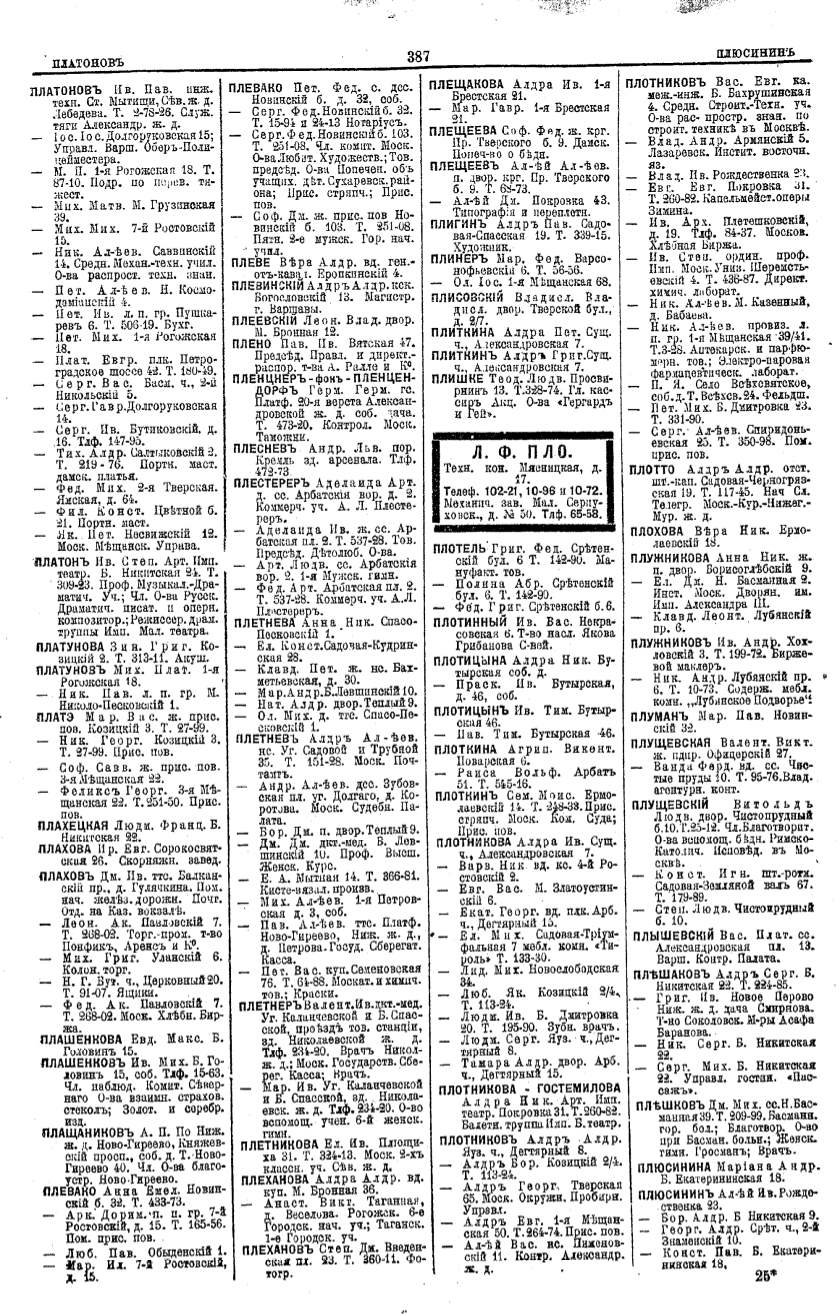 Алфавитный указатель адресовъ жителей г. Москвы и ея пригородовъ - page 385