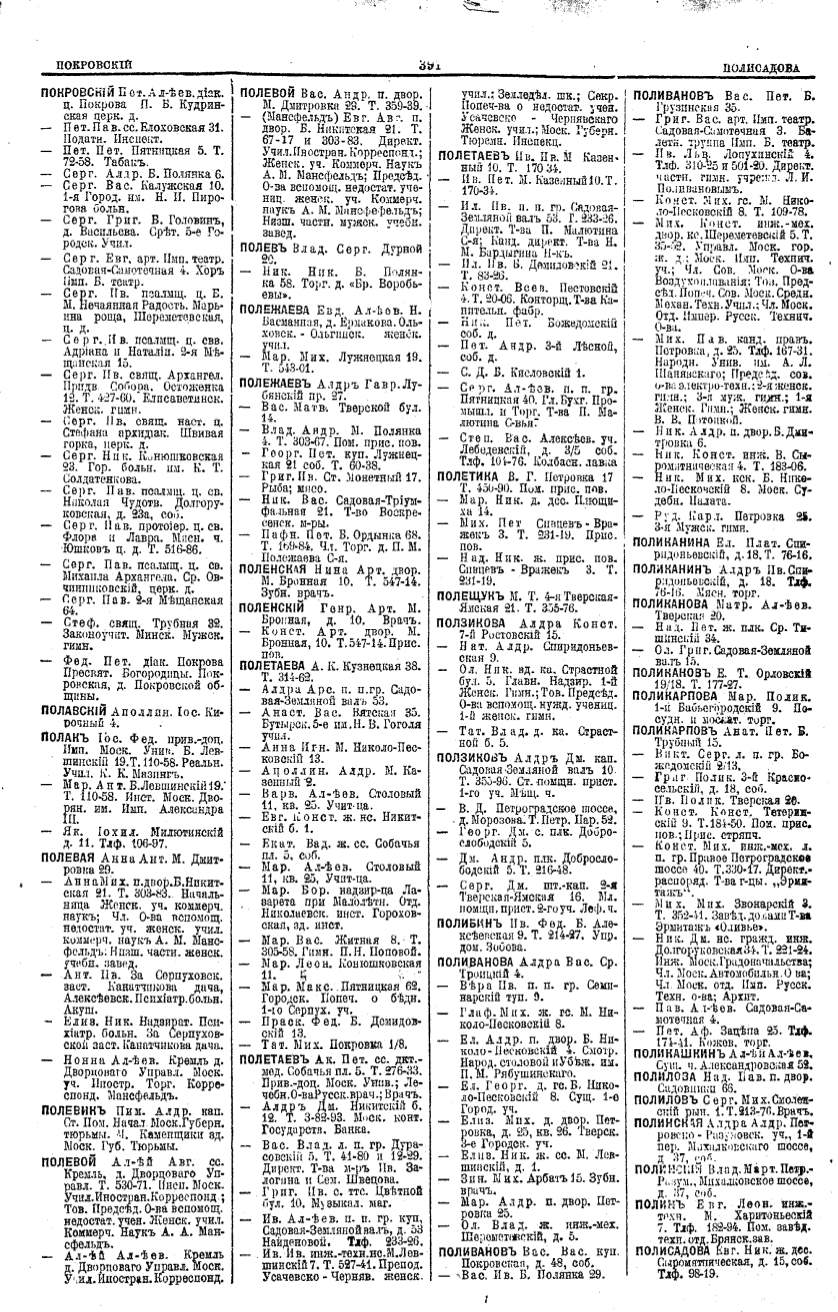 Алфавитный указатель адресовъ жителей г. Москвы и ея пригородовъ - page 389