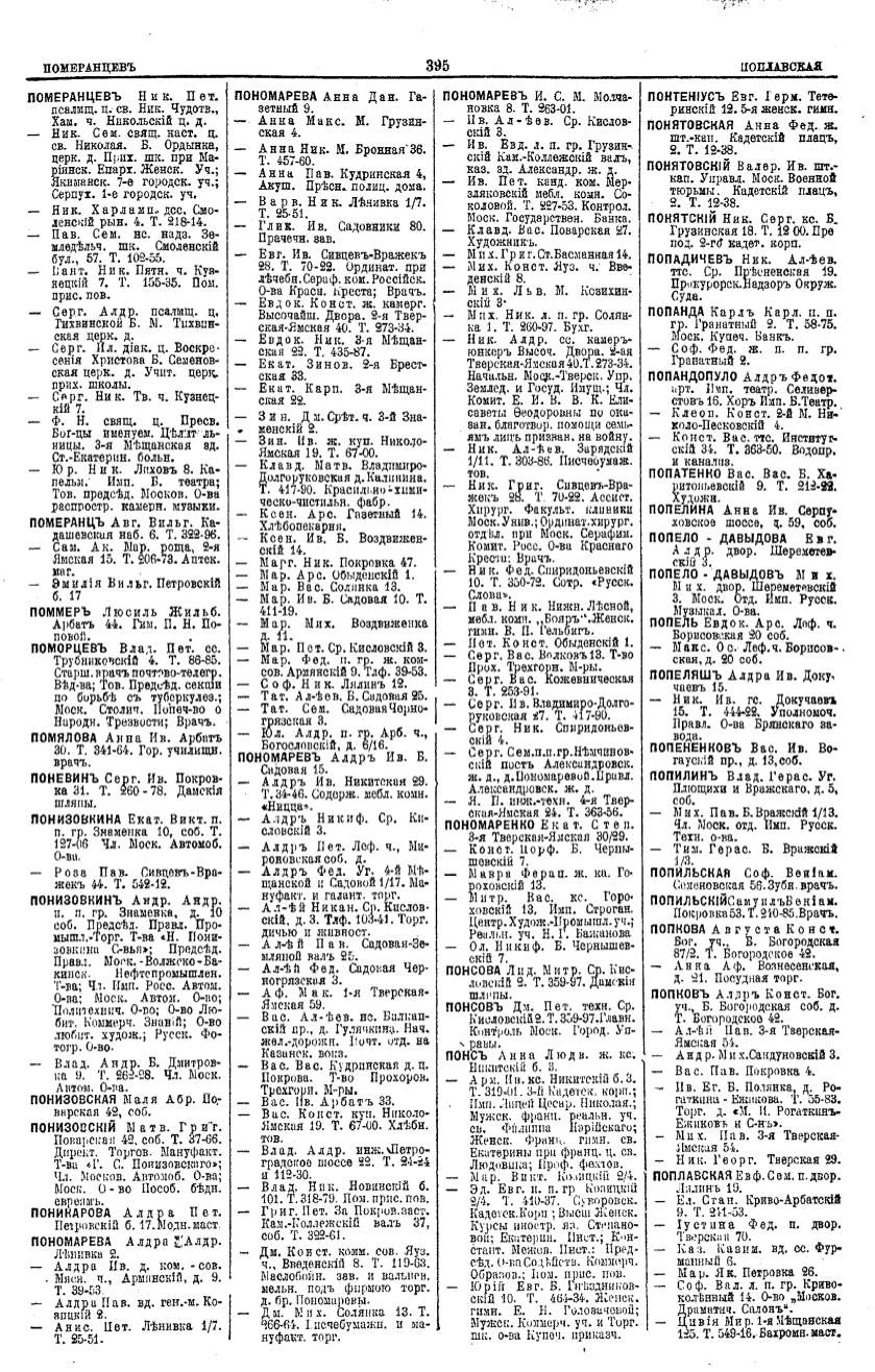 Алфавитный указатель адресовъ жителей г. Москвы и ея пригородовъ - page 393