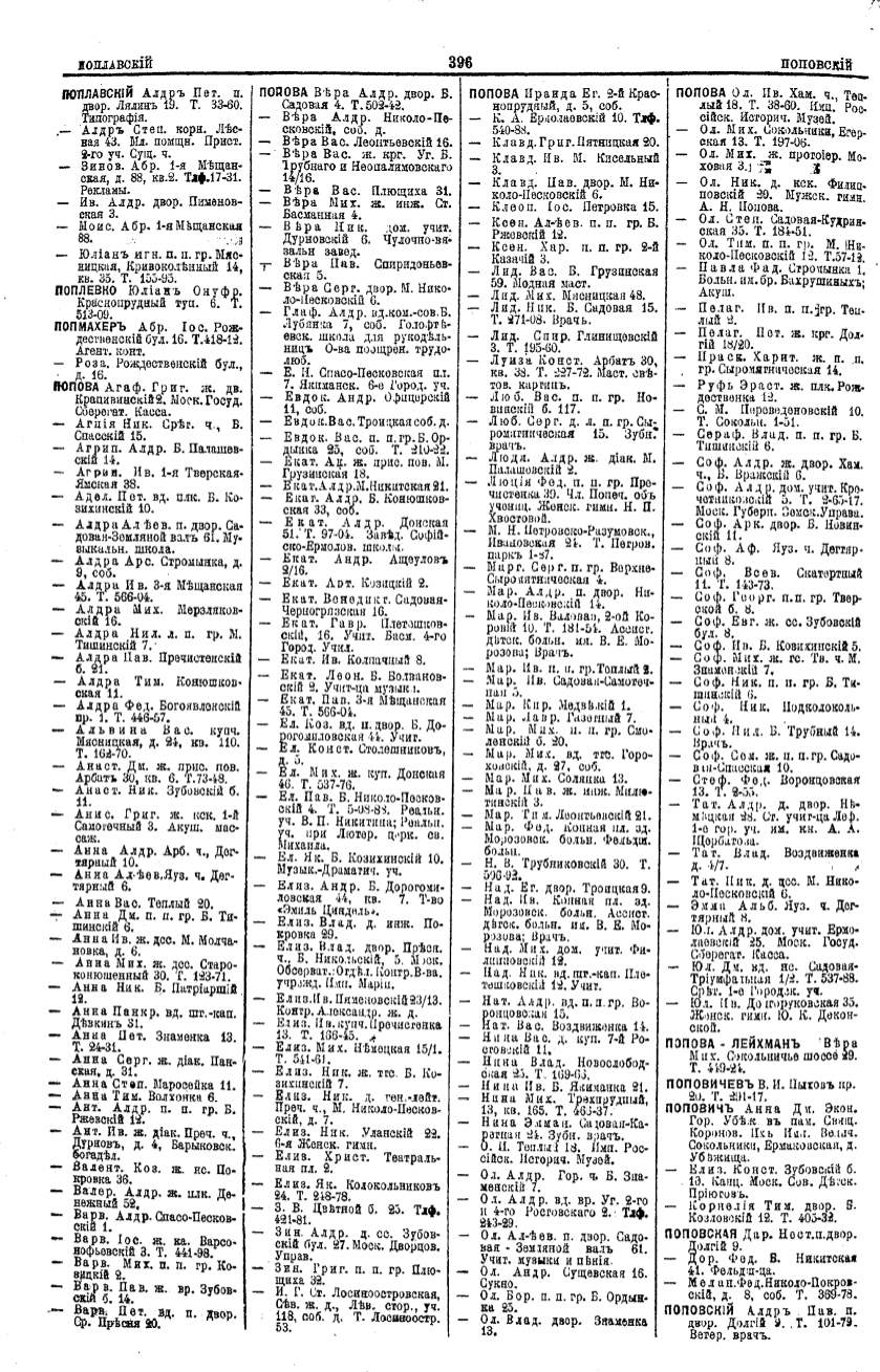Алфавитный указатель адресовъ жителей г. Москвы и ея пригородовъ - page 394