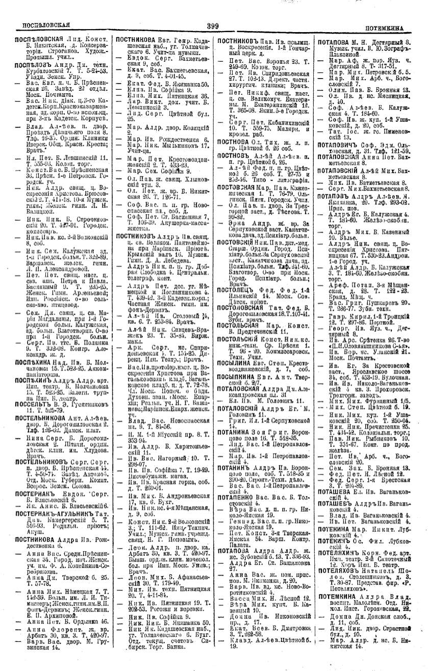 Алфавитный указатель адресовъ жителей г. Москвы и ея пригородовъ - page 397
