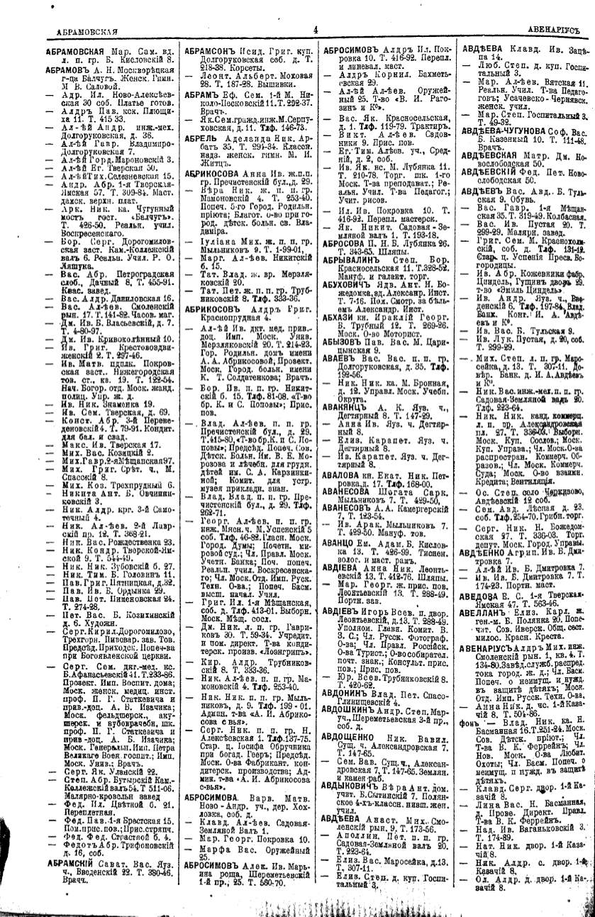 Алфавитный указатель адресовъ жителей г. Москвы и ея пригородовъ - page 4