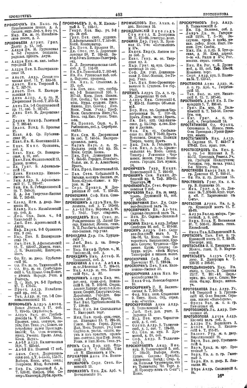 Алфавитный указатель адресовъ жителей г. Москвы и ея пригородовъ - page 401