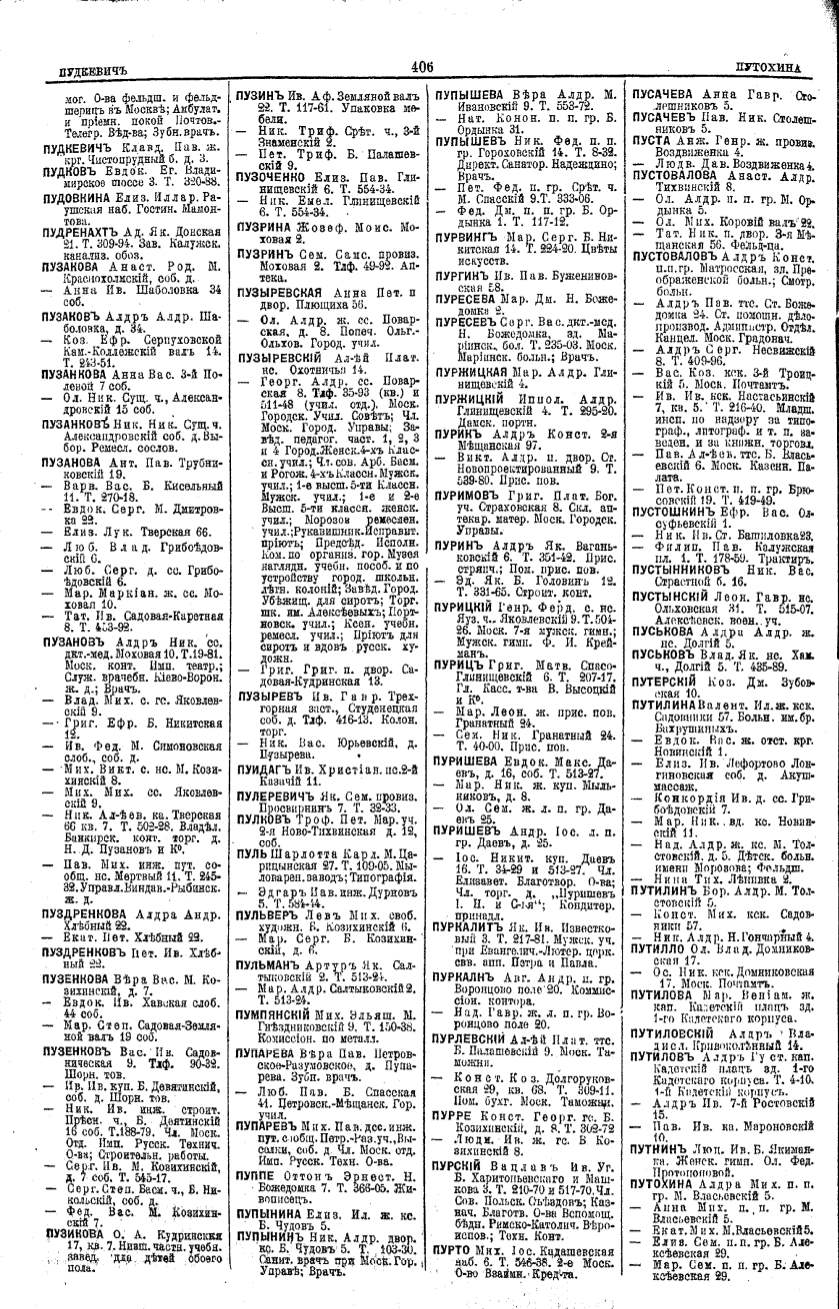 Алфавитный указатель адресовъ жителей г. Москвы и ея пригородовъ - page 404