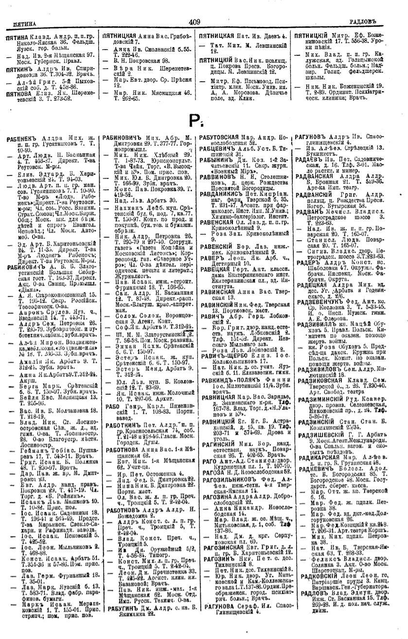 Алфавитный указатель адресовъ жителей г. Москвы и ея пригородовъ - page 407