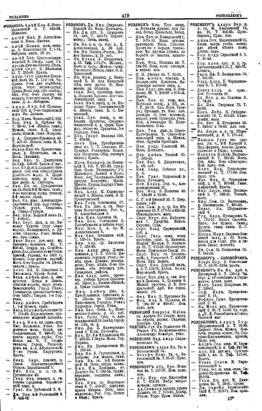 Алфавитный указатель адресовъ жителей г. Москвы и ея пригородовъ - page 417