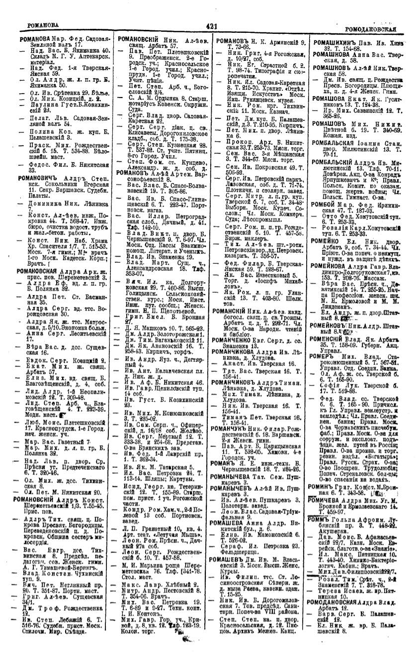Алфавитный указатель адресовъ жителей г. Москвы и ея пригородовъ - page 419