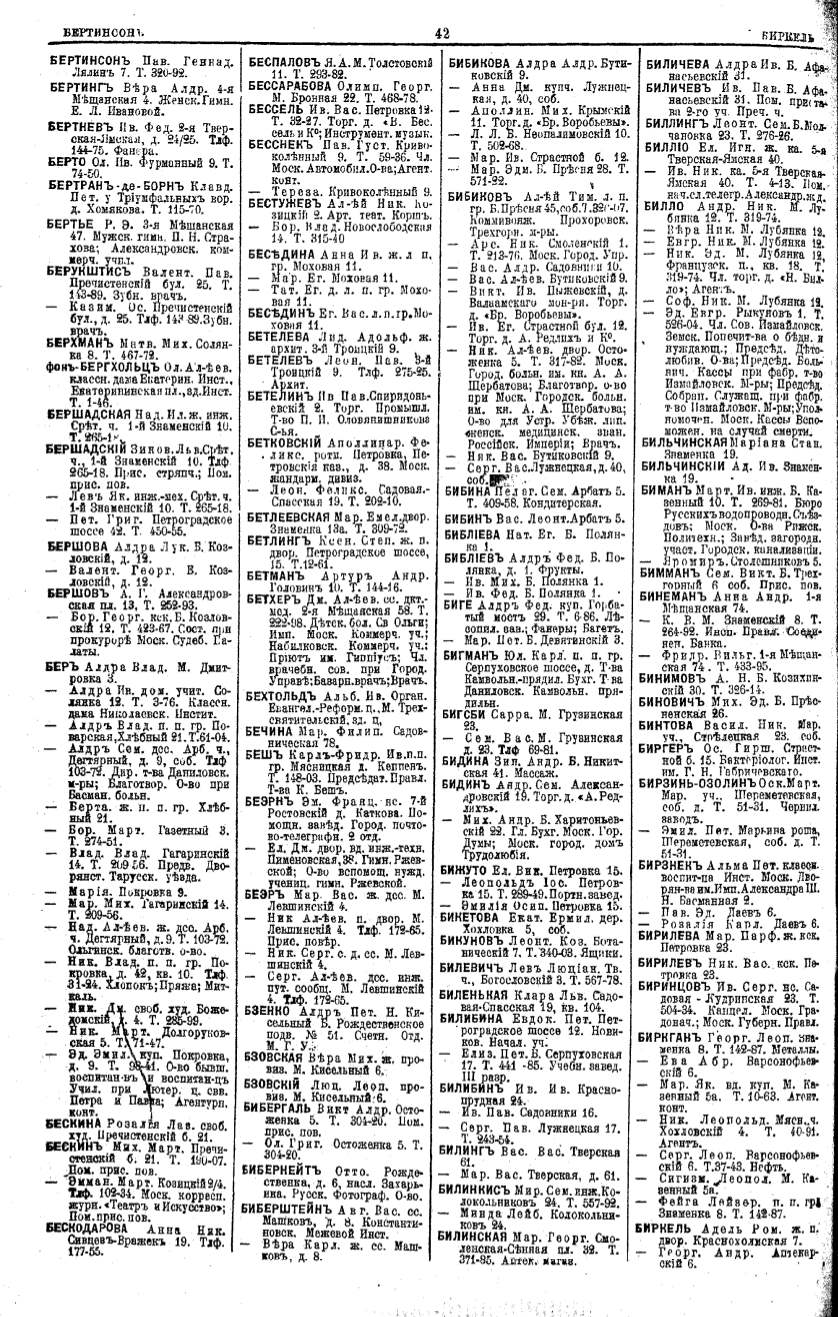 Алфавитный указатель адресовъ жителей г. Москвы и ея пригородовъ - page 42