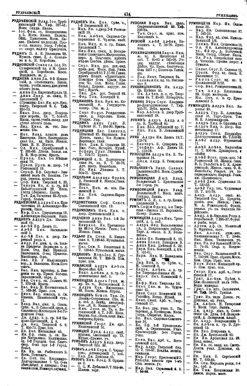 Алфавитный указатель адресовъ жителей г. Москвы и ея пригородовъ - page 422